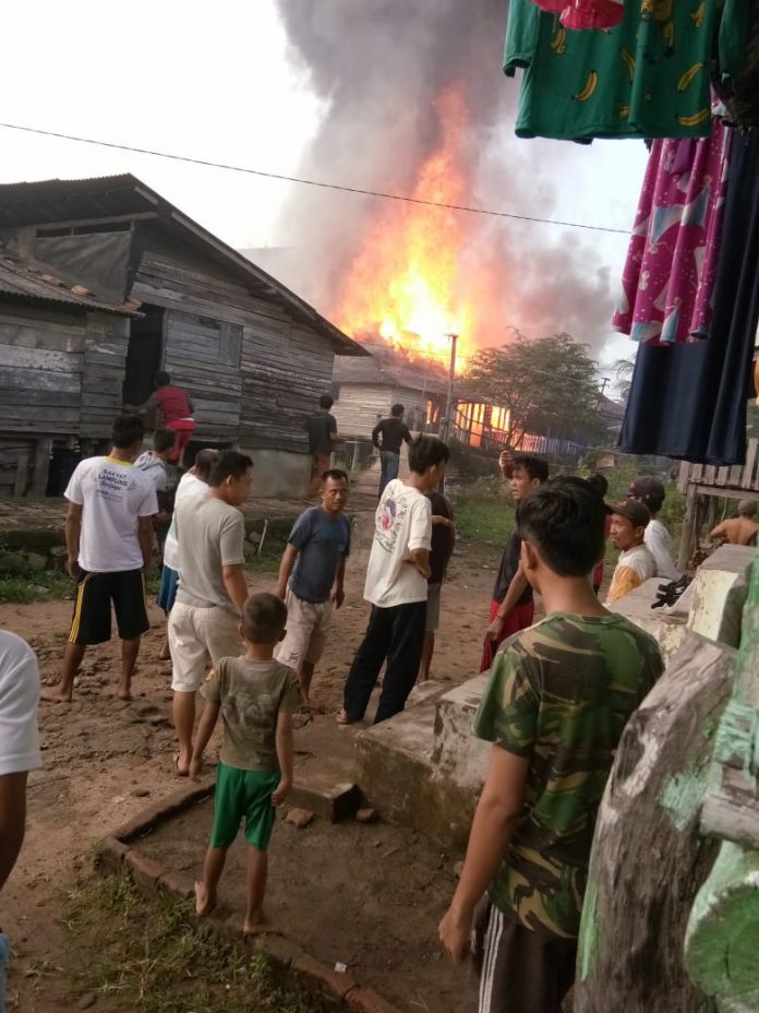 Informasi yang dihimpun di lapangan, kejadiannya berlangsung begitu cepat sehingga menyebabkan dua bangunan rumah serta kontrakan (Bedeng) dikelilingi api yang terus membesar.