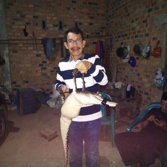 “Cecep mengira karet ban mobil. Ketika berusaha ditarik, tiba-tiba kepalanya muncul dan melakukan perlawanan. Dengan upaya yang gigih, akhirnya kepala buaya dapat dipegang dan buaya berhasil dijinakkan,” ungkap Mamat Muparih, Babinkantibmas Margo Mulyo, Minggu (29/7).