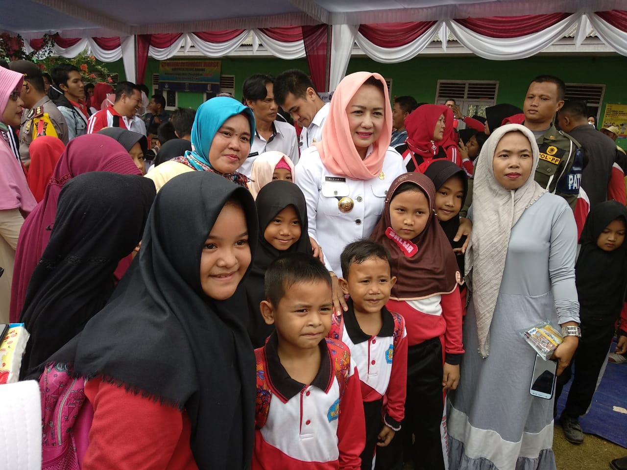 “Salam Sehat” kata Bupati Winarti, menyapa anak-anak SD dan semua yang hadir.
