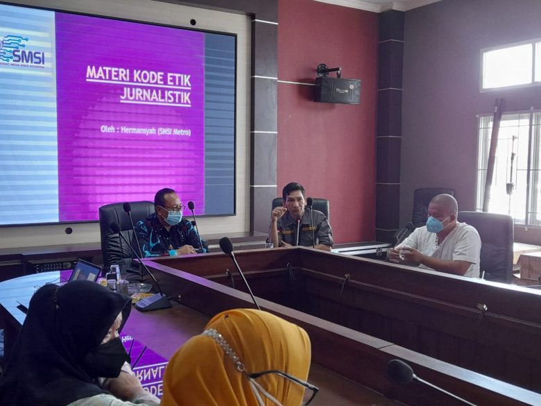 Ragamlampung.com Metro — Organisasi Serikat Media Siber Indonesia (SMSI) Metro menggelar kegiatan Roadshow Workshop Jurnalistik, di kantor Dinas Pemuda, Olahraga dan Pariwisata (Disporapar) Kota Metro, Kamis (8/4/21).