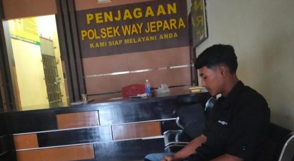 Didampingi Ketua IWO Lampung Timur, Ibnu lalu melaporkan para pelaku ke Mapolsek Way Jepara Lampung Timur.(ardian/josef)