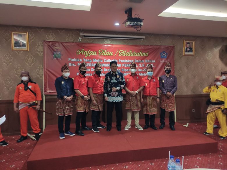 Diketahui Paduka Yang Mulia Sai Batin Puniakan Dalom Beliau Pangeran Edwardsyah Pernong Sultan Sekala Brak Yang Dipertuan Ke 23 melakukan kunjungan anjau silau ke PSMTI (Paguyuban Sosial Marga Tionghoa Indonesia) Metro, di Ballroom Grand Venetian Hotel Metro, Selasa, (18/01/2022).