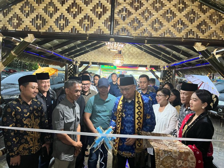 Grand Opening rumah makan Saung Bude secara resmi ditandai dengan pemotongan Pita yang dilakukan oleh Gubernur Lampung, didampingi Owner Saung Bude Budi Santoso.