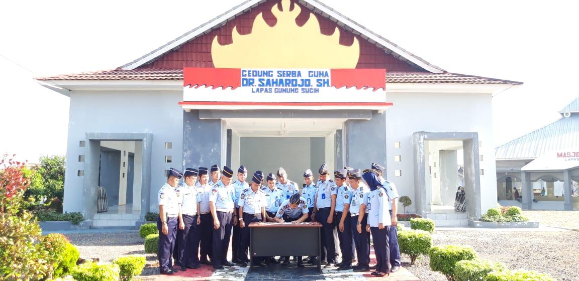 Syarpani : Multifungsi Kegiatan Pembinaan Napi ragamlampung.com,GUNUNGSUGIH -Untuk mengabadikan jasa dan maha karya Mantan Menteri Kehakiman RI, penggagas konsepsi pemasyarakatan DR. Sahardjo diabadikan menjadi nama Gedung Serba Guna