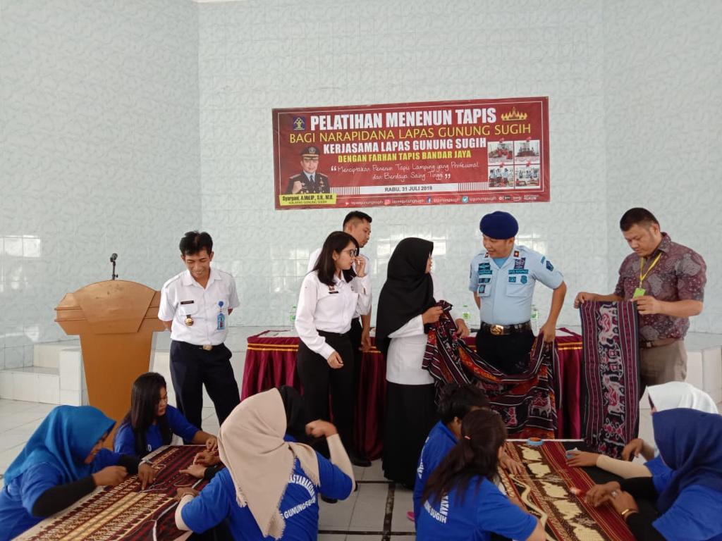 ragamlampung.com,Gunung Sugih - Meningkatnya kualitas pembinaan kemandirian narapidana sehingga menjadi terampil dan produktif merupakan salah satu sasaran strategis Pemasyarakatan sejalan dengan Revitalisasi Penyelenggaraan Pemasyarakatan. Pelatihan tenun tapis yg