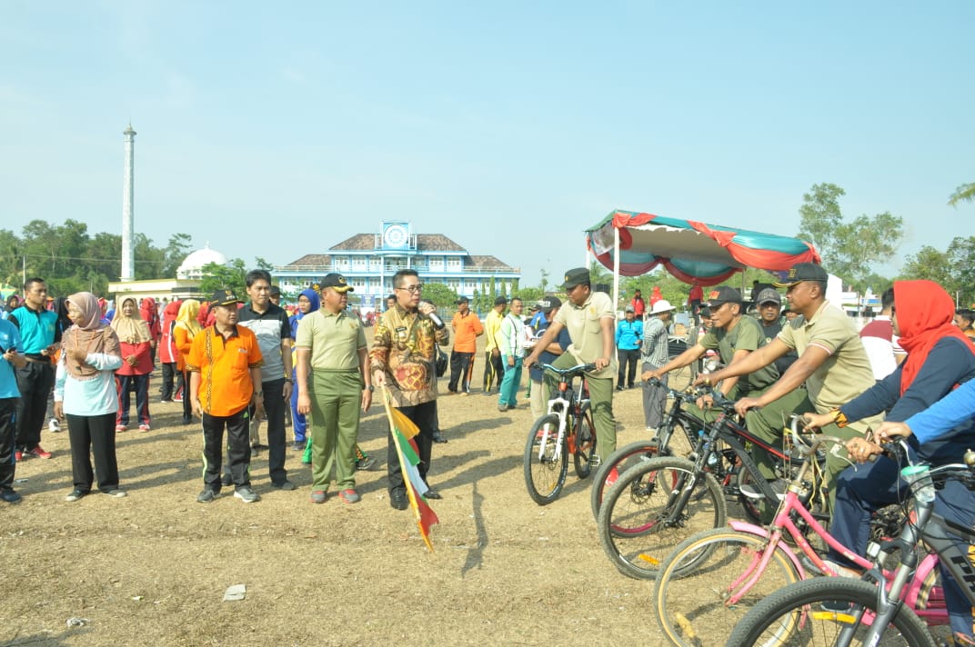 ragamlampung.com, LAMPUNG TIMUR - Bupati Lampung Timur Zaiful Bokhari menghadiri acara Senam Bersama sekaligus melepas Gowes Sepeda Ontel dalam rangka Memperingati Hari Kesaktian Pancasila dan Hari Ulang Tahun