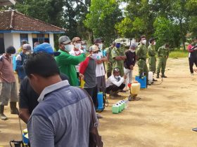 Aparatur Kampung dan Warga Purwajaya Banjar Margo Semprot Disinfektan